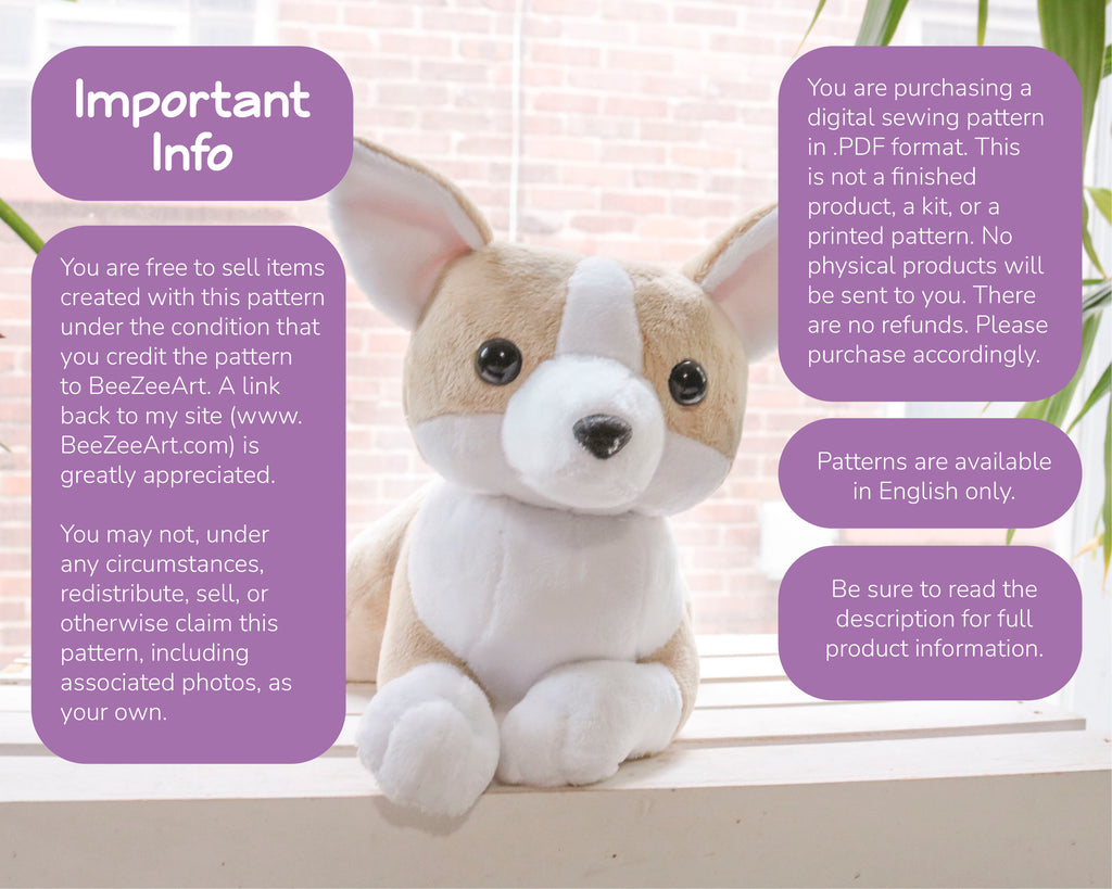 I made this sweet corgi for a friend who lost his daughter. She loved corgis. I am an experienced maker and have made quite a few stuffed animals, so I found this pattern to be straightforward and easy to follow. The results were fabulous and my friend loved it!