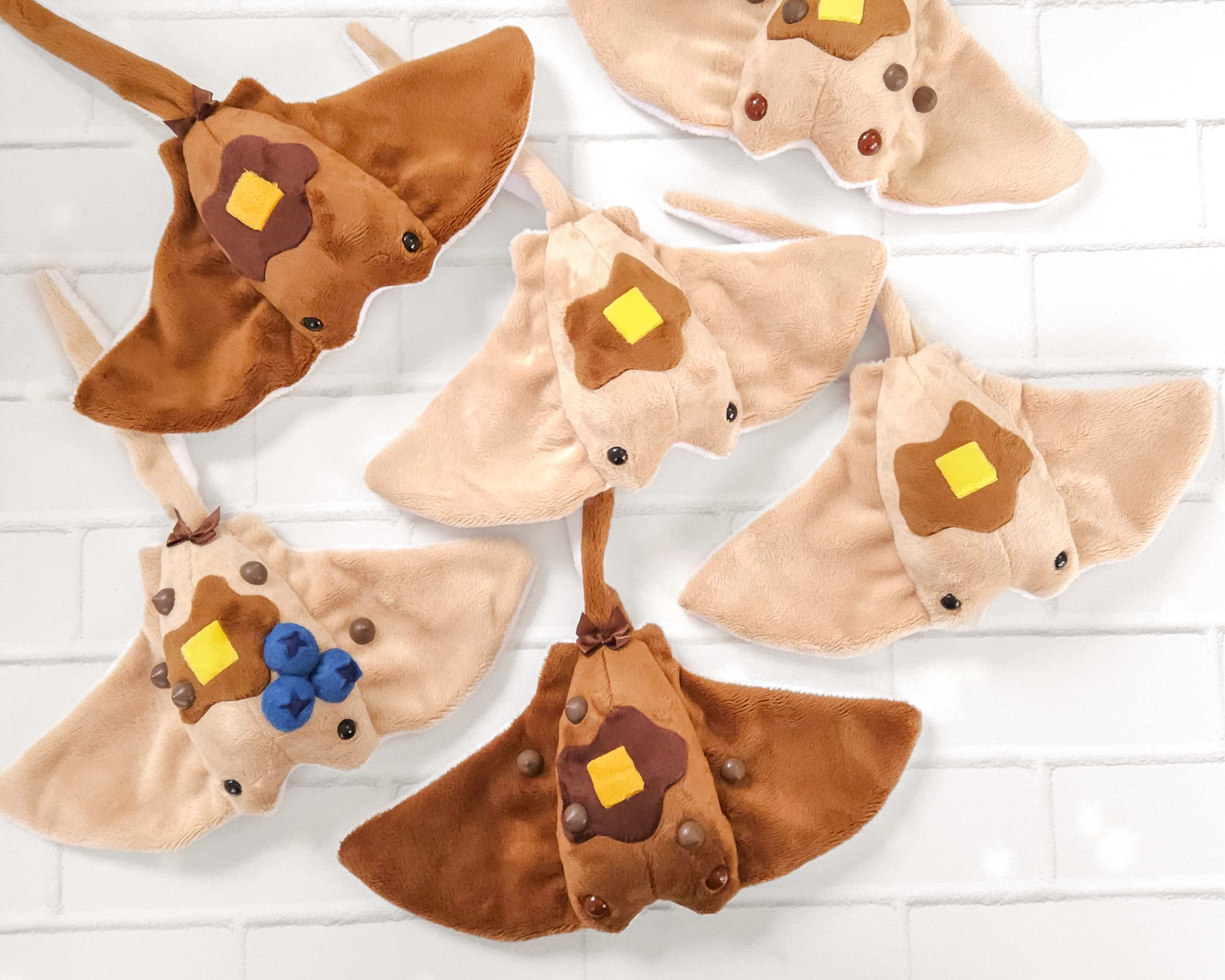 Have your breakfast and snuggle it, too with these adorable sea pancakes! Each one is made from super soft minky with ironed on applique syrup and butter. The base sea pancake includes 3 different color options, scent, and black eyes. From there, you can add on whatever you'd like to design your perfect pancake!