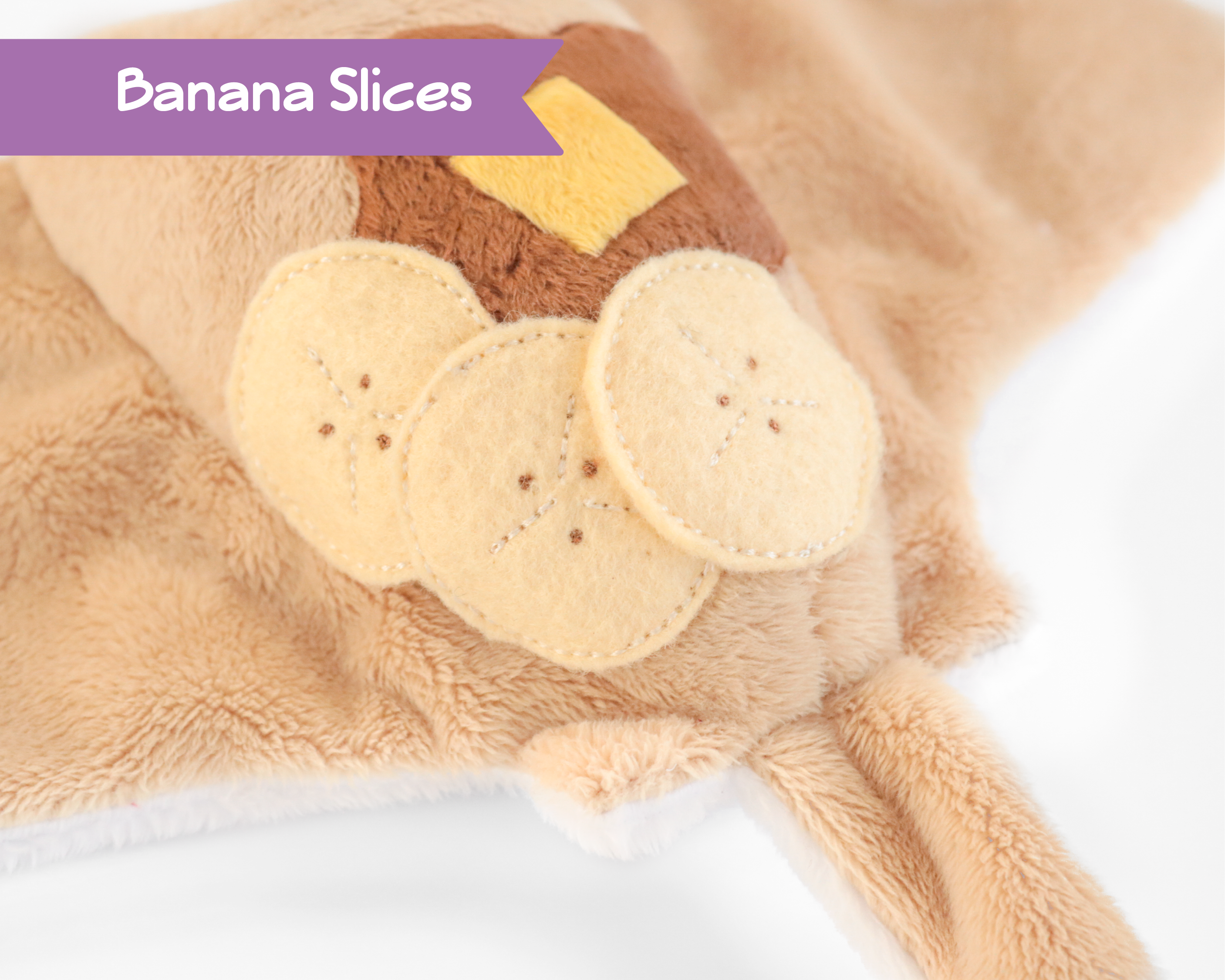 Banana Slices - Indulge in 3 banana slices made from merino wool blend felt with cute embroidered details and hand sewn in place on your plush.