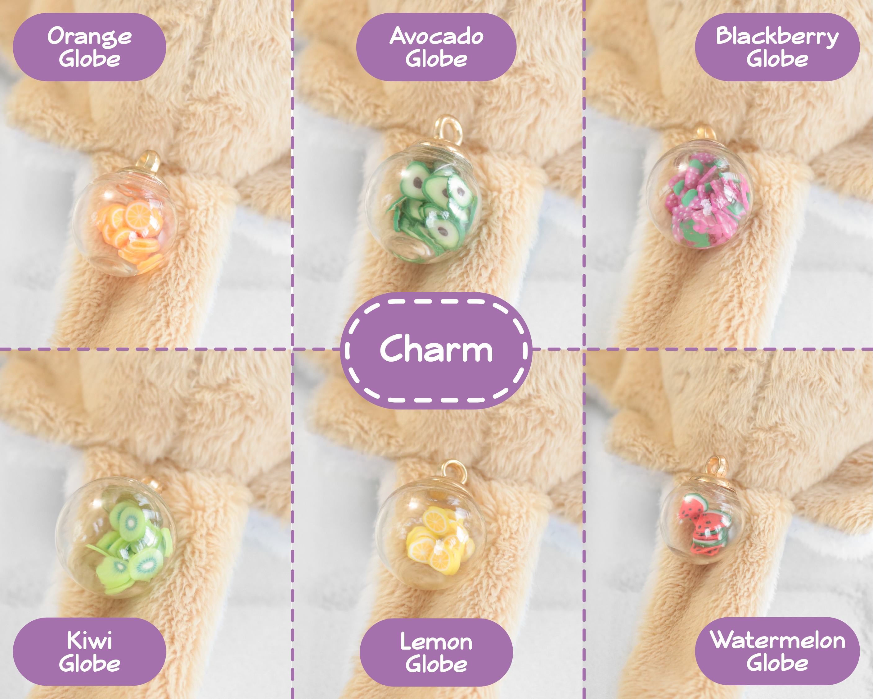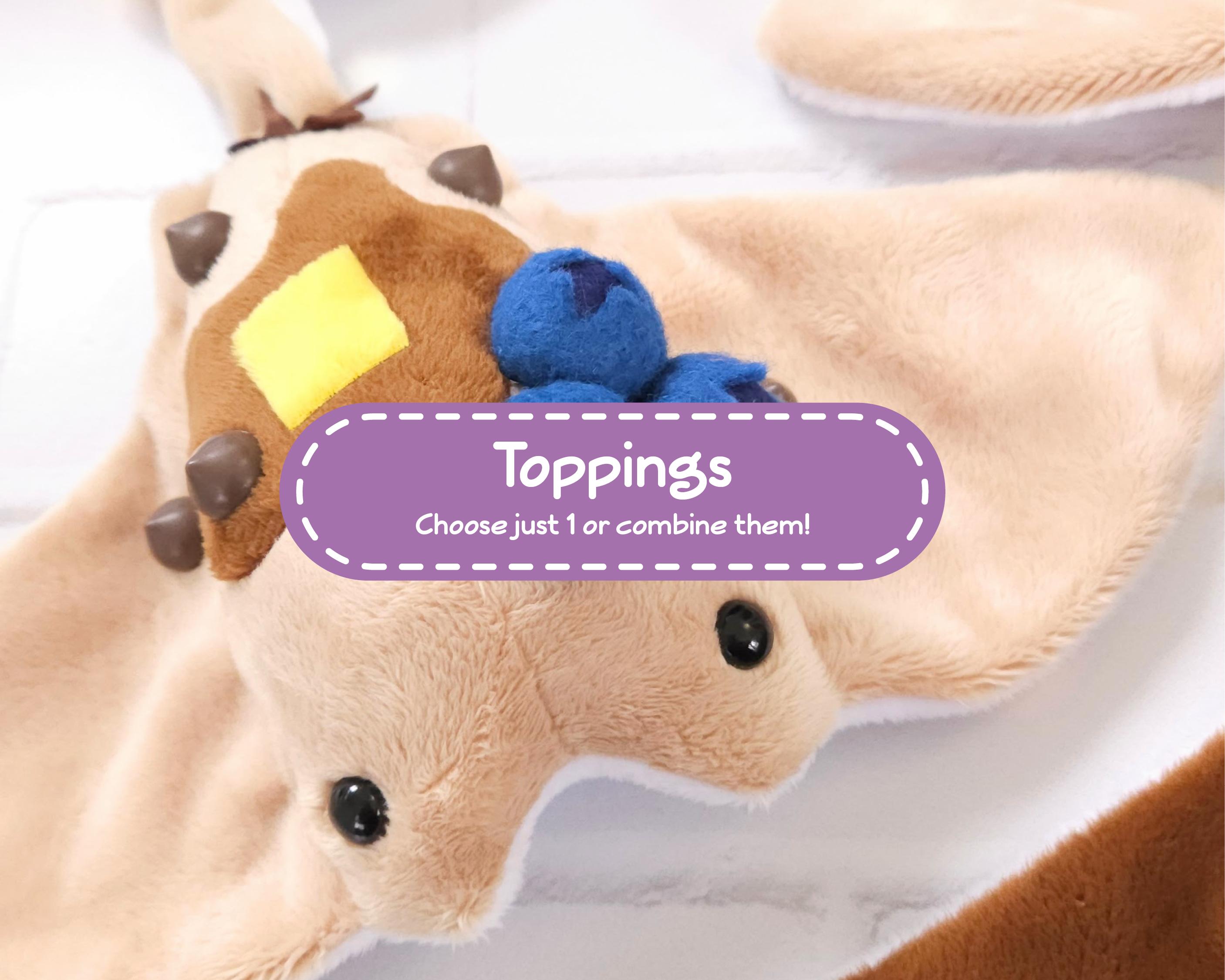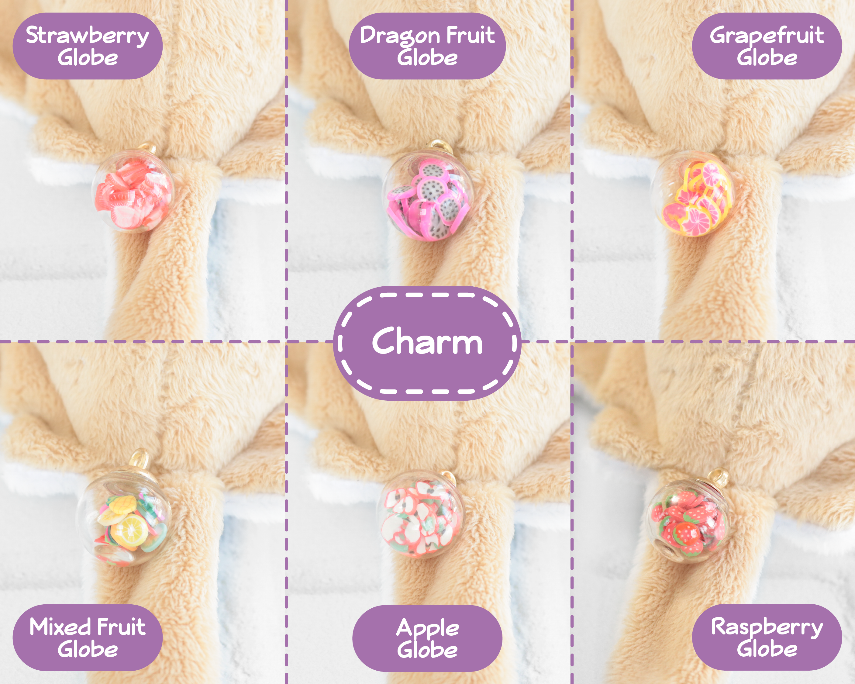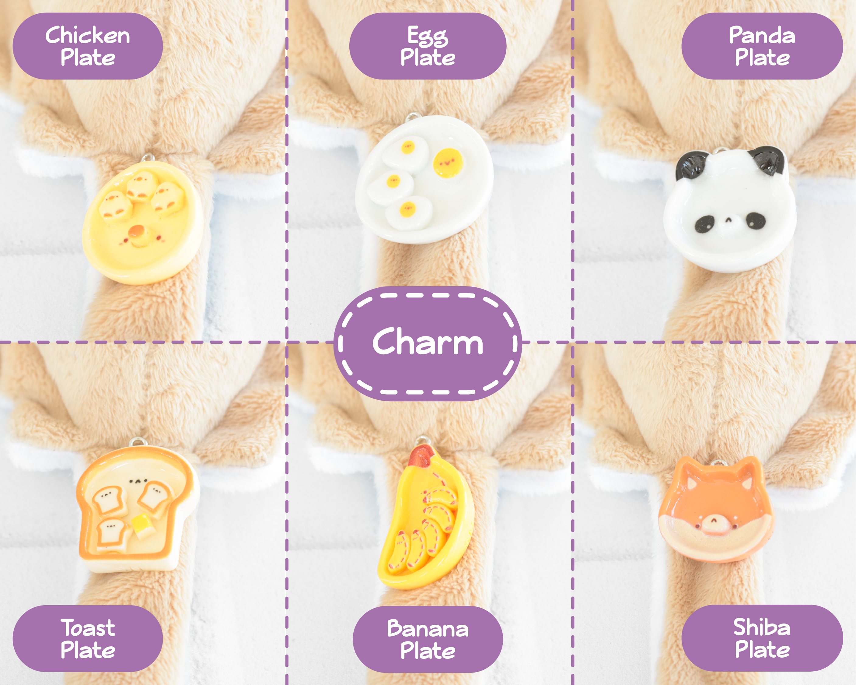 Add a charm to the base of your pancakes tail! These will be sewn to the base of the tail with a thread that matches the color of your pancakes body. If you also order a bow, they'll be placed just underneath so both will still be visible. See the photos for all the options. Some charm types are limited in quantity.