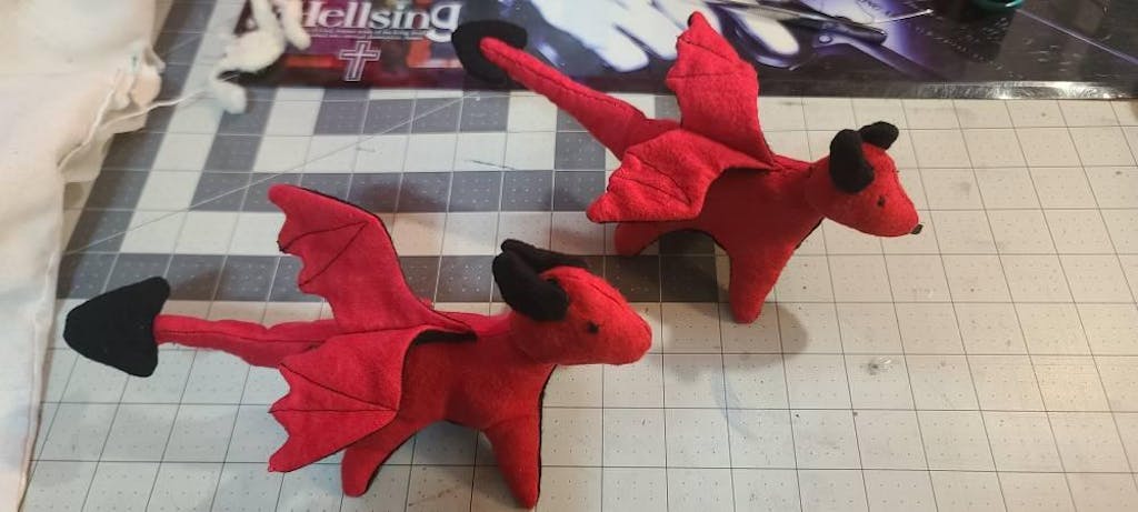 This is such a cute and easy pattern to follow. It's tiny and I sew it by hand I find it easiest to do. I made many different colored dragons!