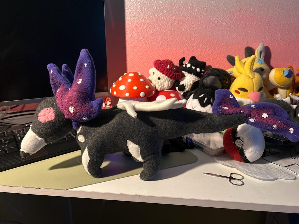 Size: Finished plushies will measure 7.5 inches from nose to tail tip, 3.5 inches tall, and 3 inches wide.
