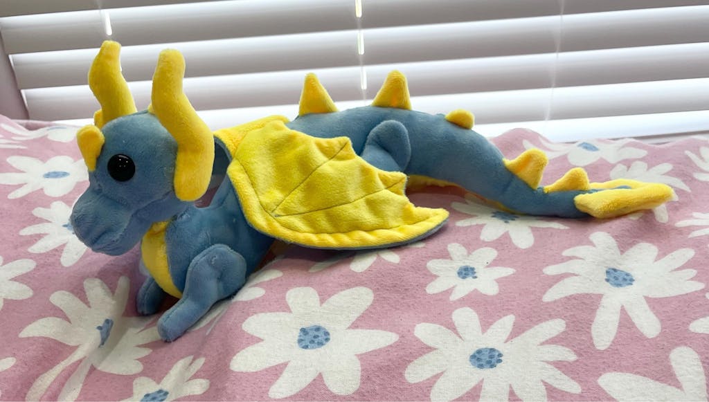 The shoulder dragon plush pattern itself with 1/4 seam allowance and exact sewing lines, written instructions, and accompanying photographs needed to create the 3 variations of the dragon. The pattern includes 1/4 of an inch seam allowance as well as showing exact sewing lines.