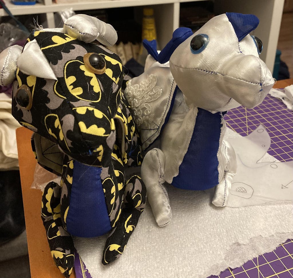 This is an advanced pattern. Comfortable knowledge of plush sewing will be required. Advanced techniques are used to attach the legs. The hardest part is sewing with slippery fabric with so many curves and the long, skinny shape of the dragon can cause problems. The different dragons may vary is difficulty level.