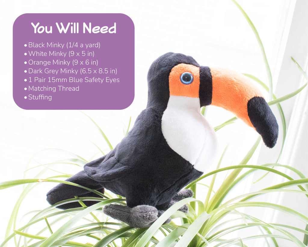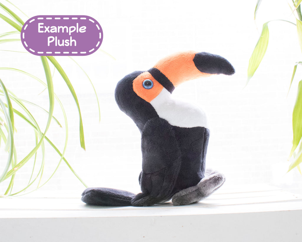 Create your own stuffed toucan with this sewing pattern! It's the perfect jungle friend to go on an adventure with. This digital download is available in PDF form and includes the pattern itself as well as photographs to follow along step by step as you make your own plush friend.